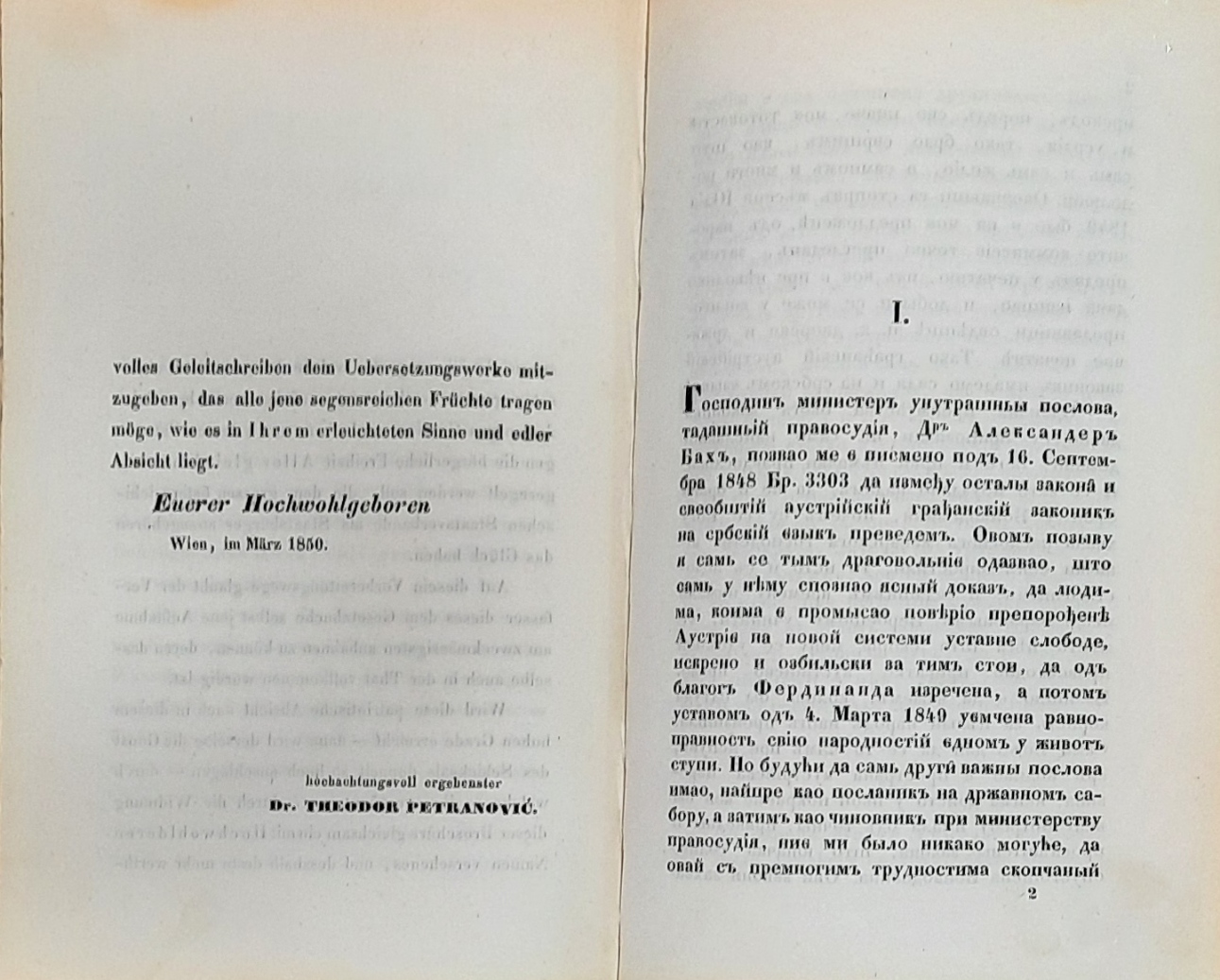 - "Sveopšti građanski zakonik za sve nasljedne zemlje Austrijske monarhije", Beč 1849. godine, na srpskom jeziku i ćirilici